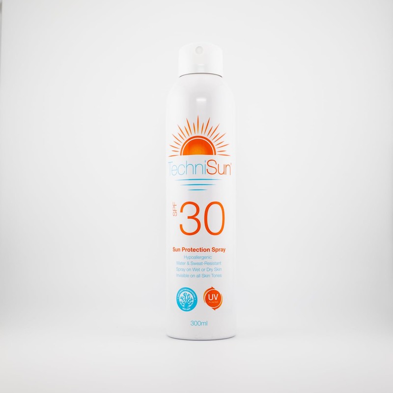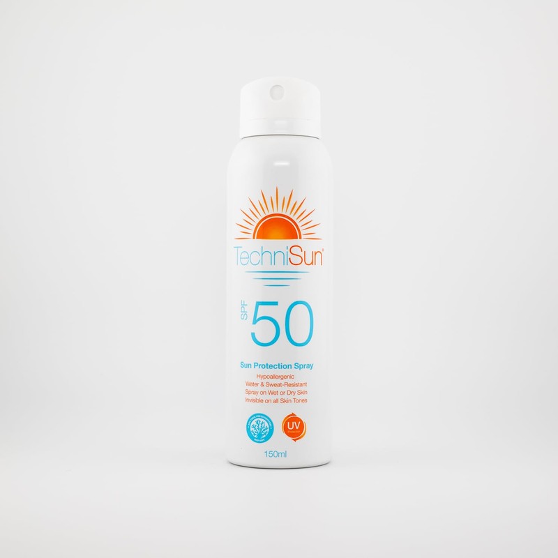- This bundle includes 2 x SPF 50 150ml and 2 x SPF 30 300ml cans of TechniSun sun protection spray, perfect for a 2-week break in the sun. Breathable, lightweight formula with anti-pore blocking technology that helps to prevent prickly heat.