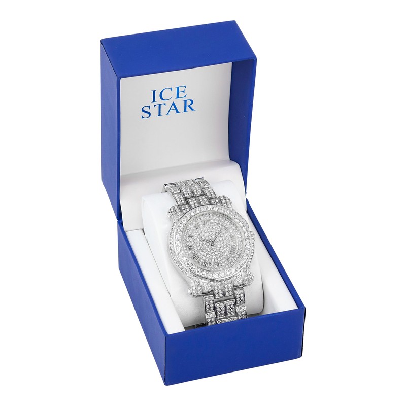 - Official Bling-ed Out 45mm Silver Diamond Watch with Roman Dial