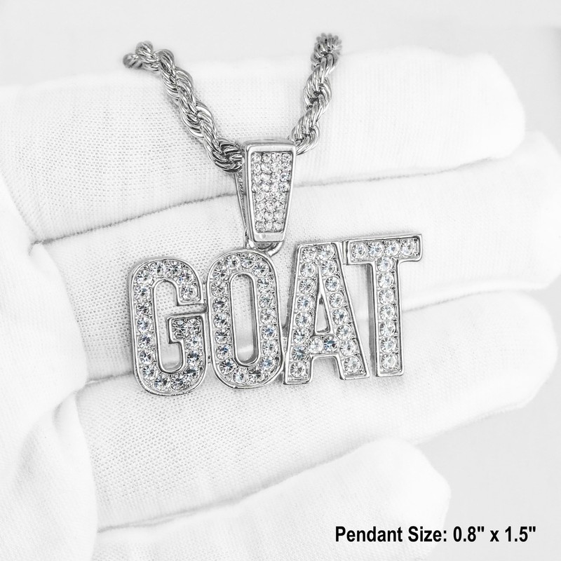 - 3-on Set: Featuring Iced Out Basketball , Iconic Number 23, and GOAT Pendants in Elegant Silver Tone Plating, Paired with Rope Chains.