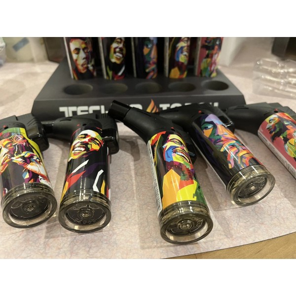 Techno torch lighter Full-size Torch Adjustable Flame Bob Marley Desig Lot Of 15