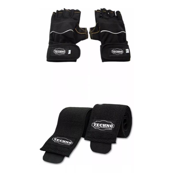 Techno Vendas Para Rodillas + Guantes Antiderrapantes Pack Pesas