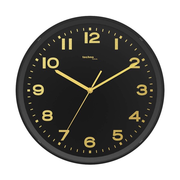 Technoline Analogue Radio-Controlled Wall Clock WT8500 Gold/Black, Plastic, 30 cm Diameter