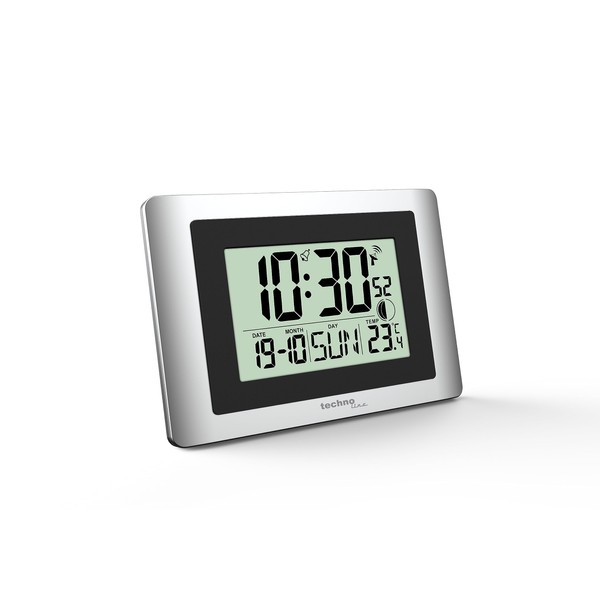 technoline WS8028 Digital Radio Controlled Wall Clock Small 22 x 15 cm Temperature Display Moon Phase Silver