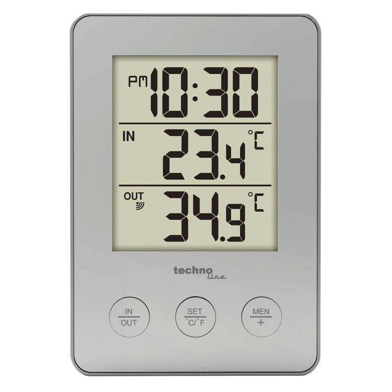Technoline WS9175 - Bürothermometer, Thermometer, digitales Thermometer mit Innentemperatur, Außentemperatur, inklusive AußensenderTX205, 76 x 22 x 110 mm
