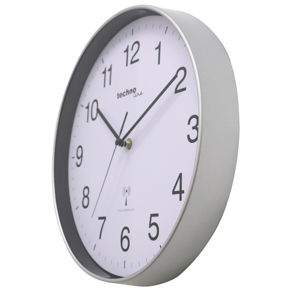 Technoline WT8030 Classic Radio-Controlled Wall Clock, Silver Frame, White Dial, Black Numerals, Diameter: 30 cm, Silver