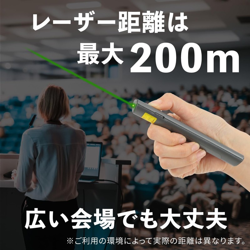 Plug and play, just insert the receiver included with this product into your computer and you can control it remotely. No complicated setup required. Easy to get started, so you can forget the stress of your presentation and display with confidence.