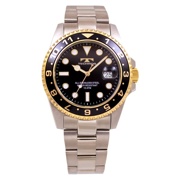 Technos TSM419GB Men's Watch, Date Water Resistant to 10 ATM, Silver, Black, Bracelet Type