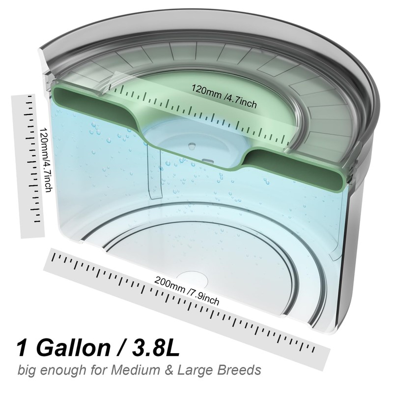 1gallon(3.8L/120oz) capacity for medium large breeds, the no splash water bowl has an non-slip silicone base, keep the dog bowl more steady. It has a special cover lip can stop your dogs from digging in her water bowl, especially suitable for long hair and long ear sloppy drinkers.