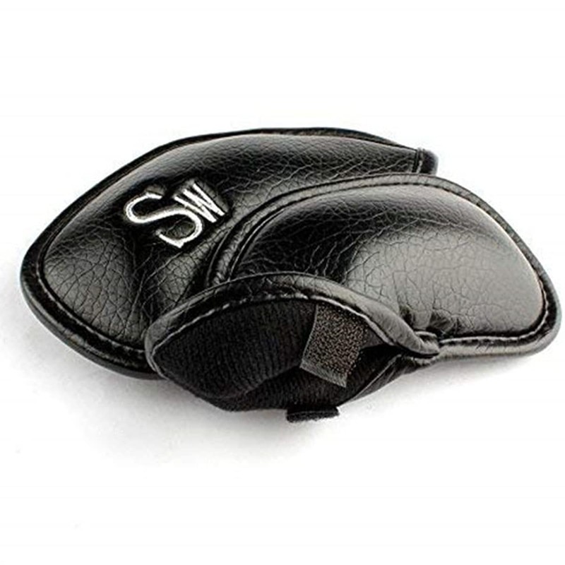 Techson Golf Club Headcovers (Black, 12pcs), Waterproof Portable Iron Head Covers Protector, Outdoor Leather Golf Putter Accessories Equipment