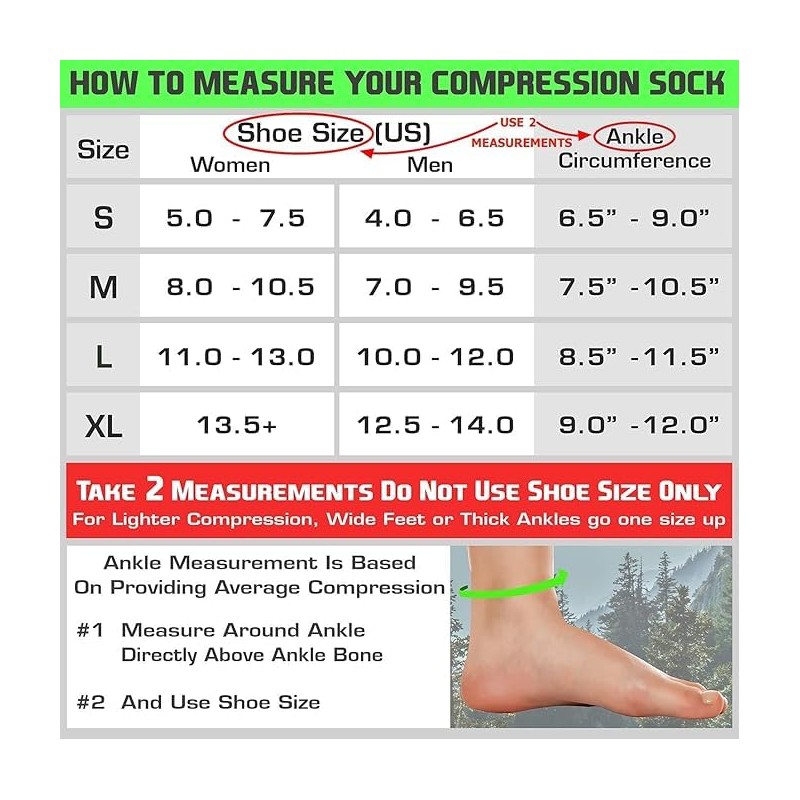 - YOUR FEET / ANKLES DESERVE TO BE HAPPY >> MEASURE BOTH YOUR SHOE SIZE & ANKLE CIRCUMFERENCE. Refer to SIZE CHART before ORDERING to ensure the BEST FIT. 4 Sizes Small, Medium, Large, Xlarge Unisex Mens & Ladies. QUARTER LENGTH socks - 80% DURABLE Nylon & 20% Spandex for tough construction and comfort. 1 Pair