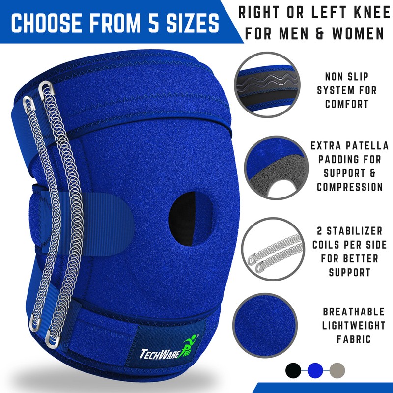 TechWare Pro Knee Brace Support - Plus Size Knee Brace. Relieves ACL, LCL, MCL, Meniscus Tear, Arthritis, Tendonitis Pain. Dual Stabilizers Non Slip Comfort Neoprene. Blue XXXLarge