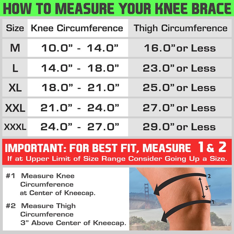 EASY TO USE - Choose from 4 sizes. MEASURE AROUND THE KNEE CAP. MEDIUM 10" - 14”, LARGE 14” - 18”, X-LARGE 18” - 21”, XX-LARGE 21” - 24” AND XXX-LARGE 24” - 27” for men and women