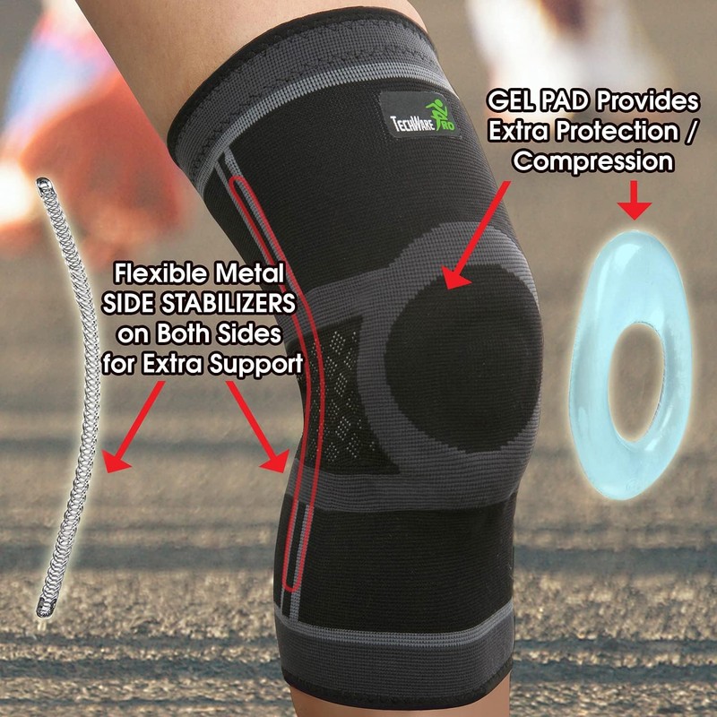 TechWare Pro Knee Compression Sleeve - Knee Brace for Men & Women with Side Stabilizers & Patella Gel Pads for Knee Support. Meniscus Tear, Arthritis, Joint Pain Relief. 5 Sizes. Single Pack by TechWare Pro Store