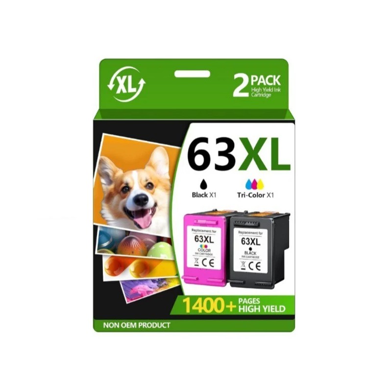 - Packing List: 63xl ink cartridges black and color (1 x 63XL Black, 1 x 63XL Tri-color), 1 x User Guide