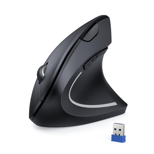 TECKNET 2.4G Ergonomic Mouse Vertical Wireless - 4800 DPI Optical Carpal Tunnel Mouse Right Hand, 5 Adjustable DPI, Quiet Clicks, 6 Buttons for Laptop, Desktop, PC, Computer - Black