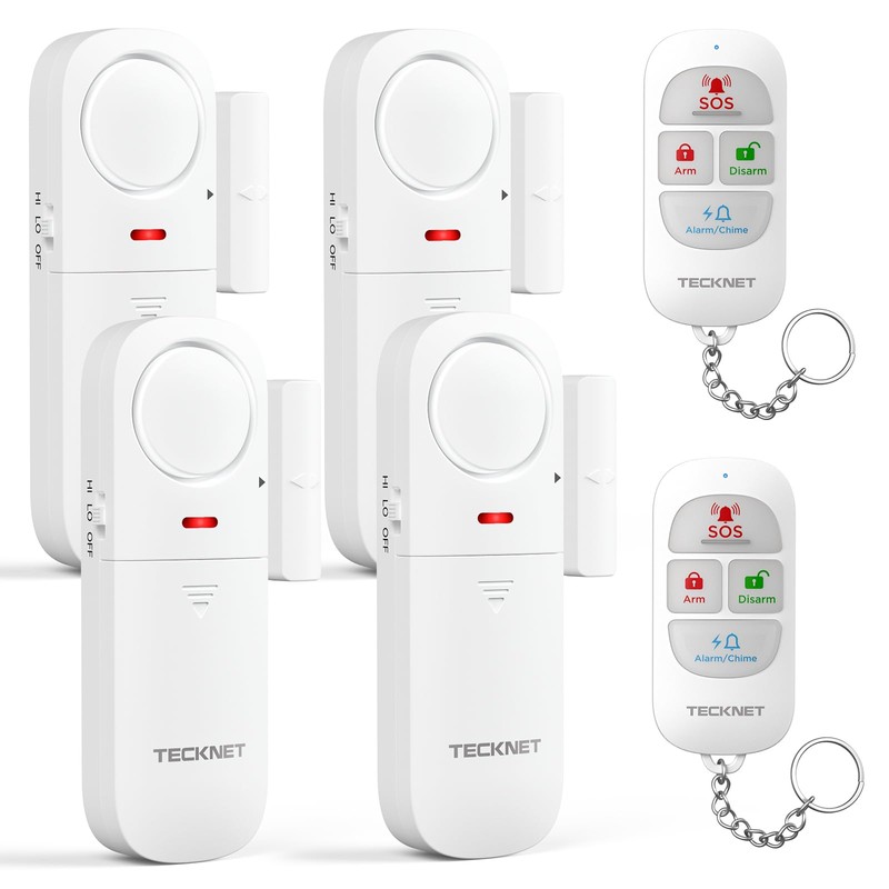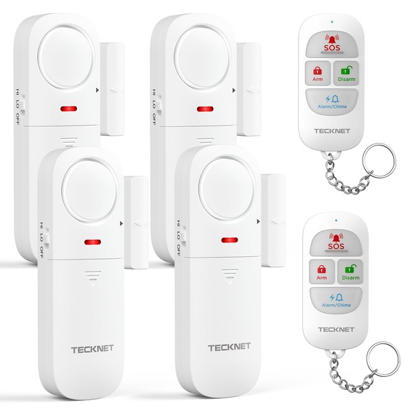 TECKNET Door Alarm Sensor 4 Packs With Remote Control, Window Alarms for Security, 4 Modes, Adjustable Volume, Wireless Magnetic Door Sensor Burglar Alarm Systems for Your Home Security Systems