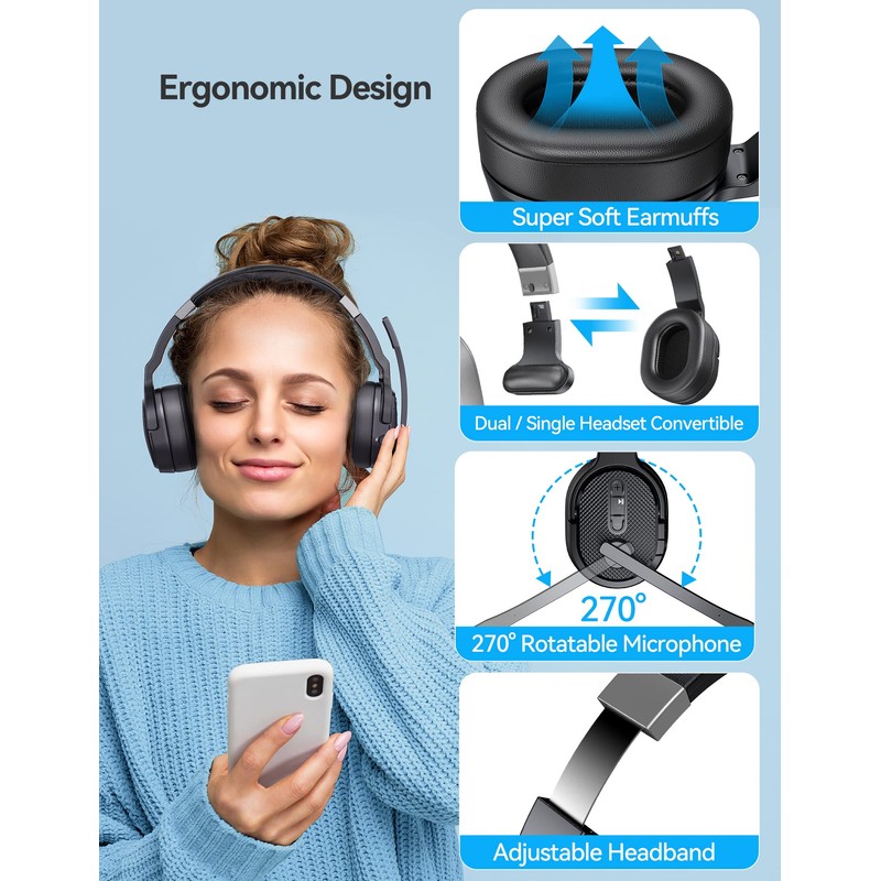 - 36 MONTHS SUPPORT: If you encounter any issues with the wireless headset with mic for work, please contact our customer service for assistance. We offer a 36-month warranty for registered customers; When returning the bluetooth headset with microphone, please provide detailed information on the device used, headphone connection, and the issues faced. This feedback will help us improve the product.
