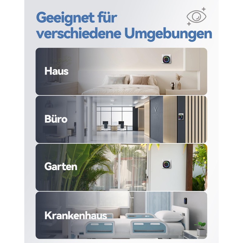- RGB lighting and mute function: the receiver of this wireless plug-in doorbell has an eye-catching RGB light and a volume of up to 110 dB, making it ideal as a doorbell for the elderly and hearing impaired people. If you don't want to be disturbed by a person's ringing while working or resting time, you can simply activate the RGB light with mute function.