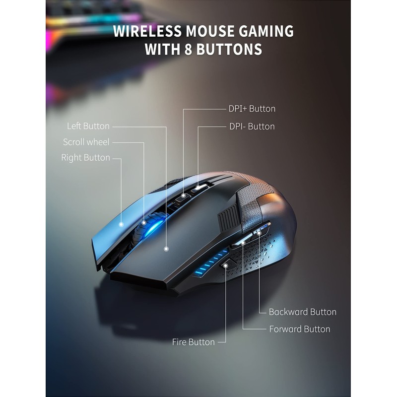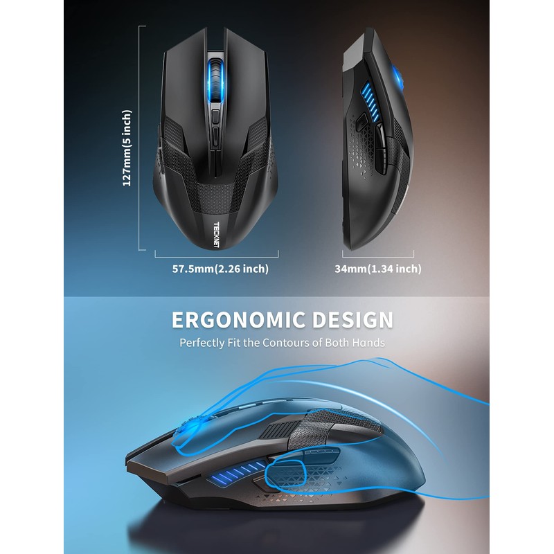 - STYLISH & DURABLE! – The awesome black and discreet blue details will make your PC gaming mouse will impress everyone! Lifelong Clicks: 20 million, 12 month battery life and low battery indicator will never let you drop out for lack of juice during gaming process.