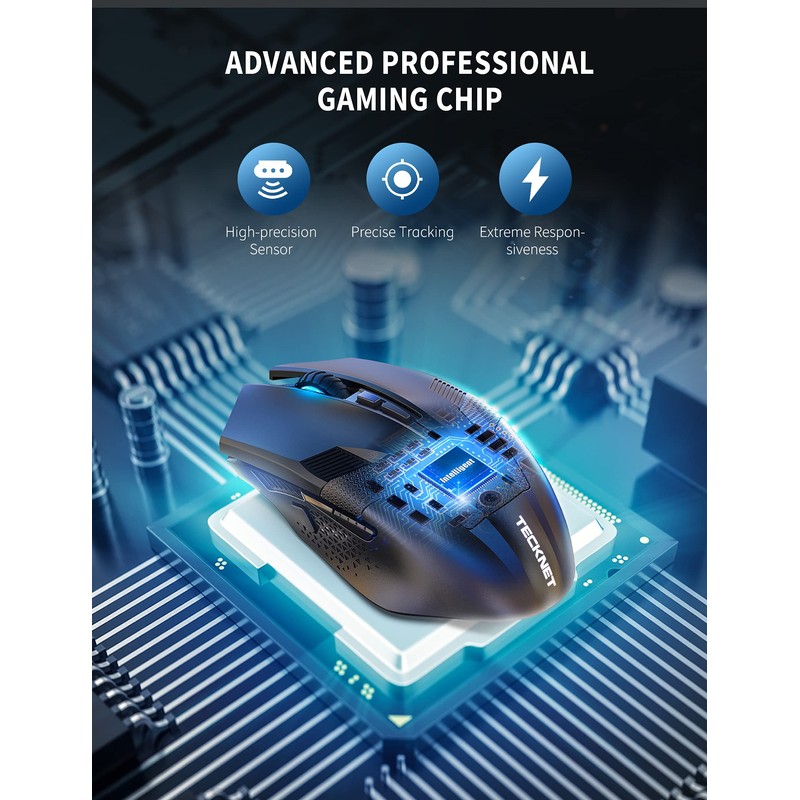 TECKNET Wireless Gaming Mouse with USB Nano Receiver, 2.4GHZ Up to 4800DPI, Wireless Computer Mice with 8 Buttons, Ergonomic Design (Not for Programmable) Professional PC Gaming Cordless Mouse Mice