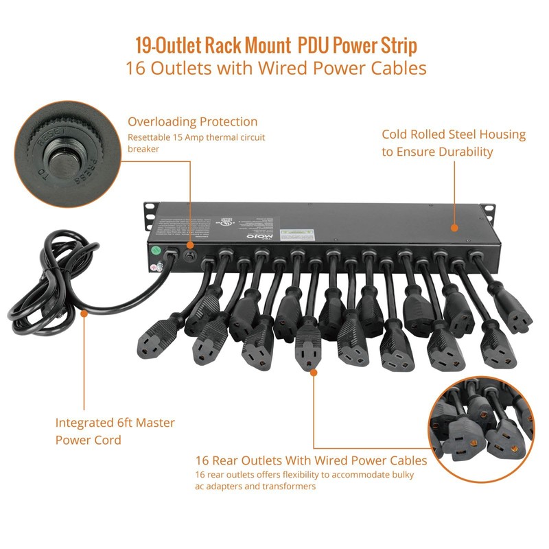 - Versatile and Space-Saving: This 1U Rackmount PDU features a compact design that allows for efficient use of space in standard 19-inch racks. 16 rear-facing plug outlets and three front-facing outlets provide ample connectivity for your devices.