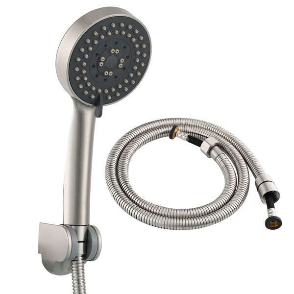 Tecmolog BS144NAF Brushed Nickel Shower Head with 5 Jet Types Plastic Water-Saving Shower Head with Hose and Bracket