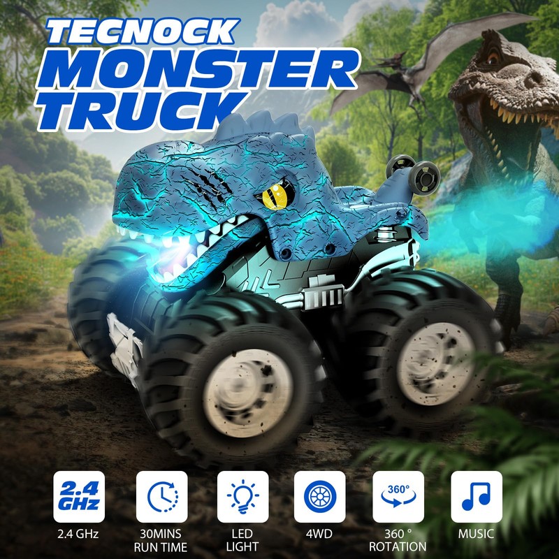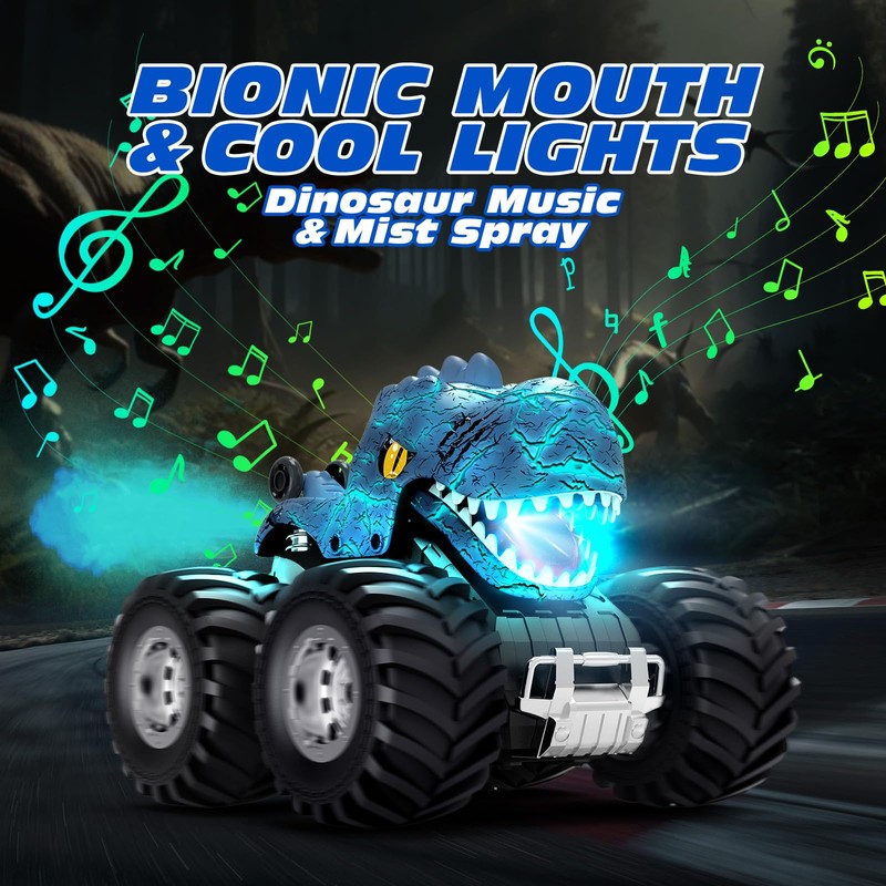 - Coole Licht und Lustige Jet-Performances: Der Ferngesteuerte Monstertruck verfügt über explosive Muster-Licht und sendet realistische Dinosaurier-Rufe aus, die Kindern visuelle und auditive Auswirkungen verleihen. Der Strahl am Heck des Stahlbetonfahrzeugs kann mit der Lampe abgestimmt werden, um eine ähnliche Wirkung wie Flammenspray zu zeigen.
