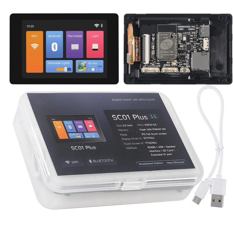 • WT32-SC01:WT32-SC01 Plus 3.5 inch Capacitive Multi-touch LCD Display 320*480 ESP32 WT32-SC01 Plus Development Board with 3.5 inch IPS multitouch display, with GUI 8MB PSRAM, WLAN, BT, BLE MCU module.