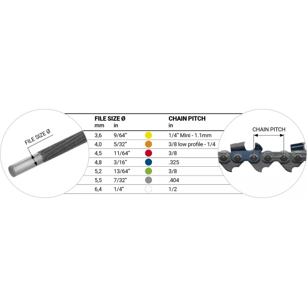 Tecomec chainsaw files are a very high quality chainsaw file. The files are calibrated to achieve the correct filing angle of the chainsaw chain tooth when hand filing. These files are what are called 8" standard chainsaw files meaning they have 8" of filing area plus the file tang.