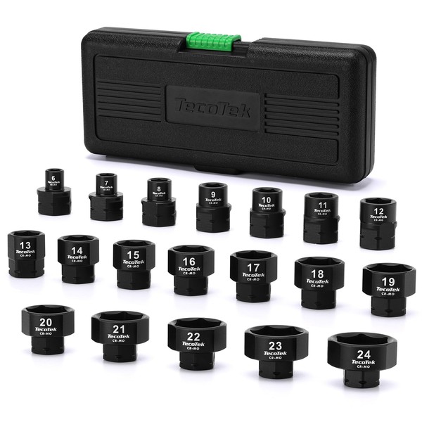 TecoTek 19-Piece 3/8-Inch Drive Metric Low Profile Impact Socket Set, Stubby Socket Set, 6mm-24mm, No Skips Sizes, 6 Point, Cr-Mo, Shorter Socket for Tight Areas