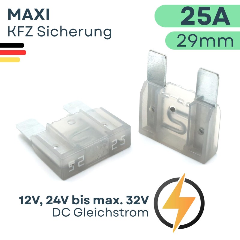 - Box contents: 25 amp DC fuse for 12 V to max. 32V DC Quantity as selected