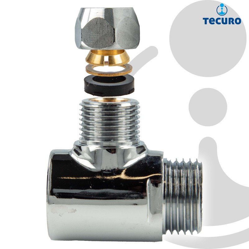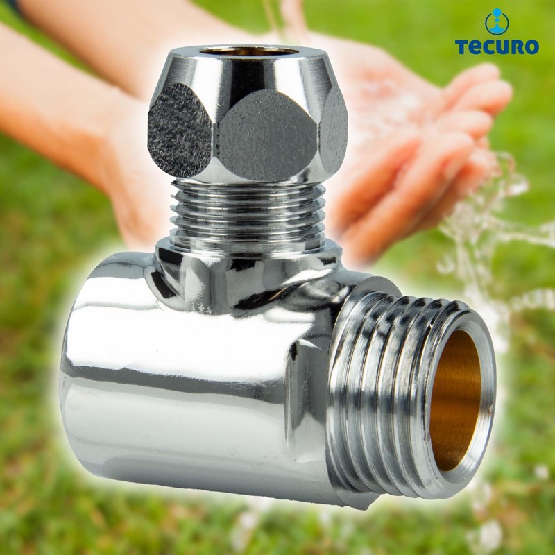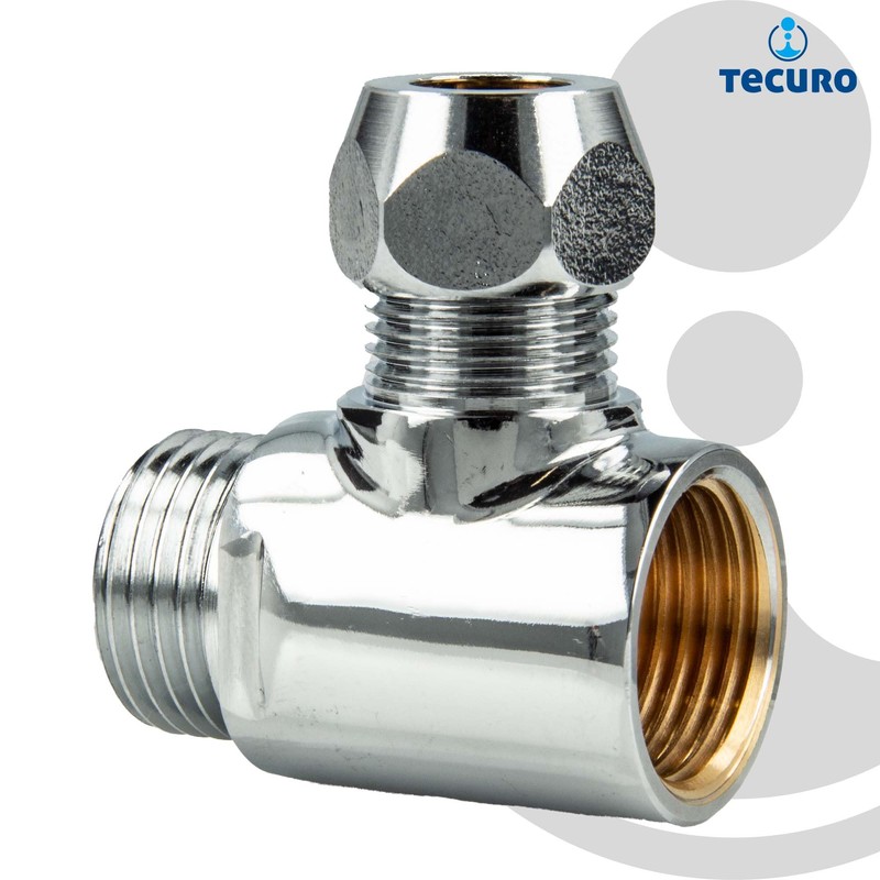 tecuro 2-way distributor T-piece 1/2 female thread x diameter 10 mm crimp x 1/2 male thread, chrome-plated brass