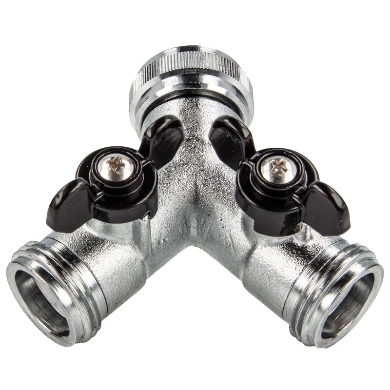 tecuro 2-Way Y-Splitter with Shut-Off Valves for Taps and Valves - Chrome-Plated