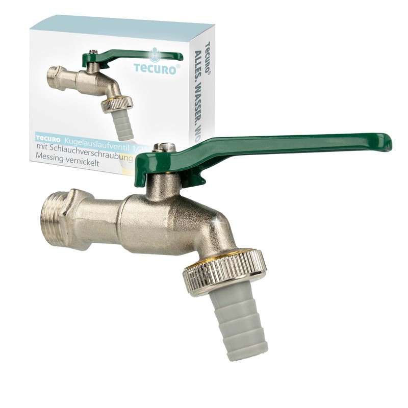 'Tecuro Drain Valve Ball Drain Valve Tap 1/2 Wall Connection with Green Handle