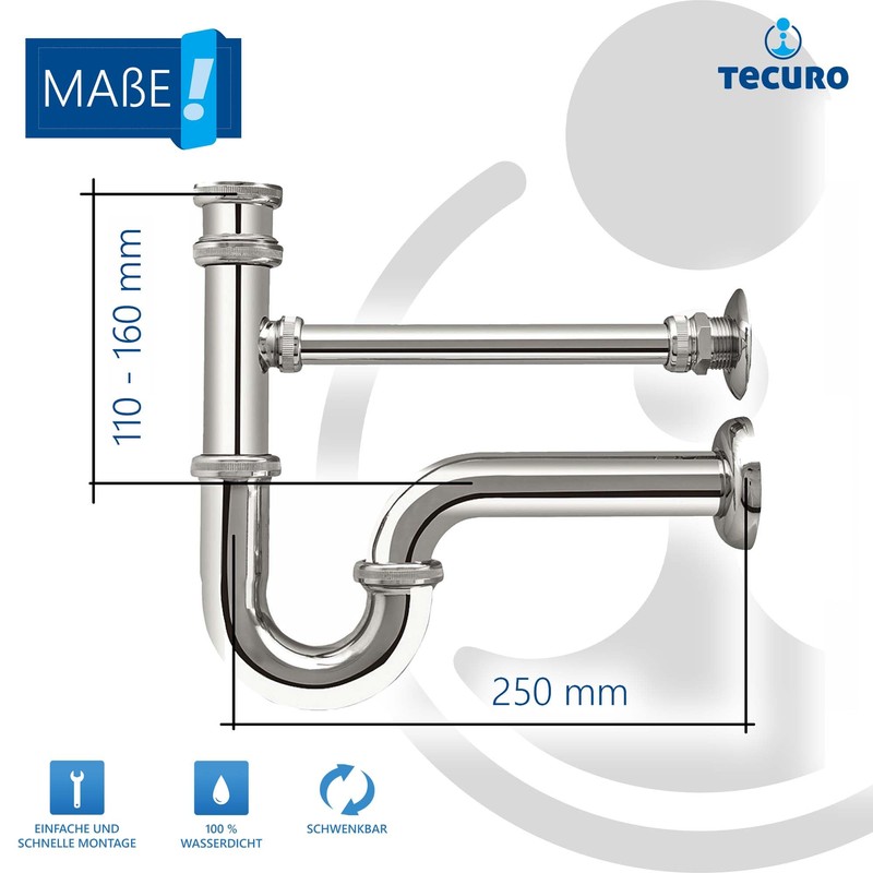 - Easy installation: the tecuro tube siphon can be easily attached thanks to the Qute screw connection and the 3/4 inch external thread.