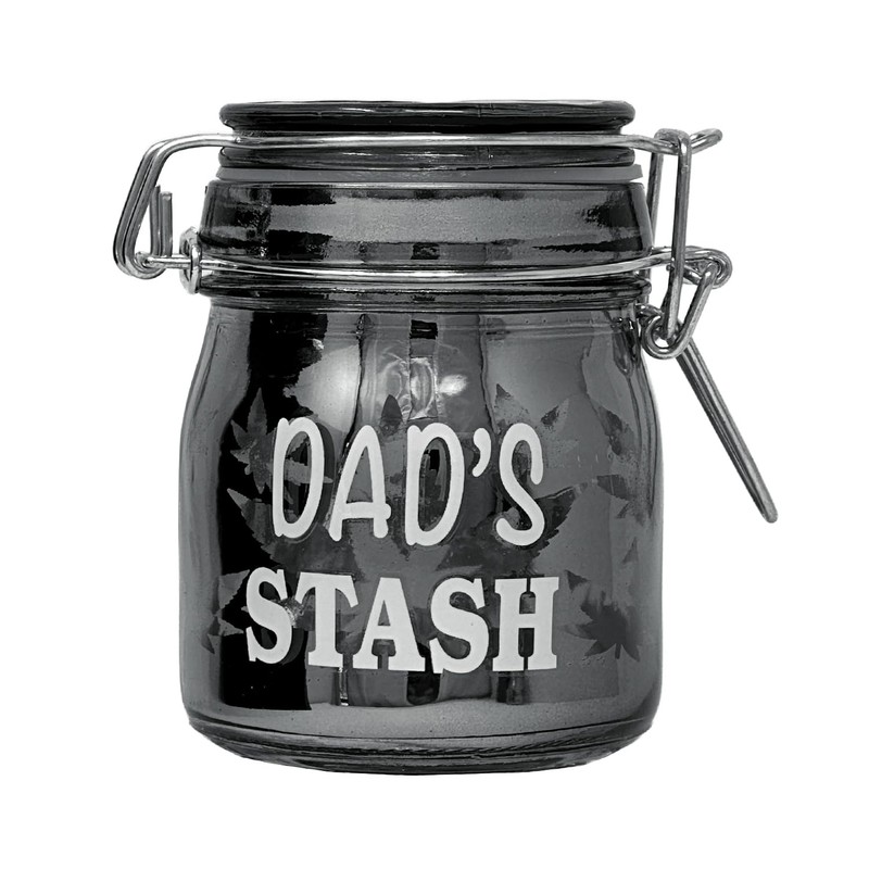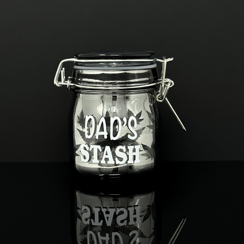 - HIGH STYLE: Metallic silver glass body with leaf cutouts and "Dad's Stash" blazened on the front