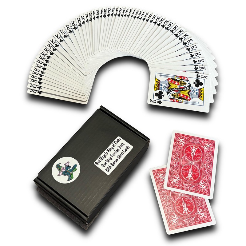Ted's Sterling Magic Bicycle One Way Force Deck Trick Kit with Bonus Short Cards, Red Back Clubs (King)