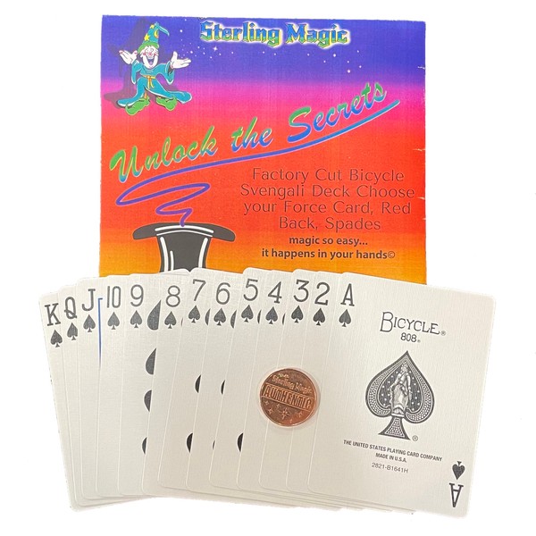 Ted's Sterling Magic Bicycle Svengali Deck Trick in Red Back, Spades Suit, Choose Your Force Card (Nine)