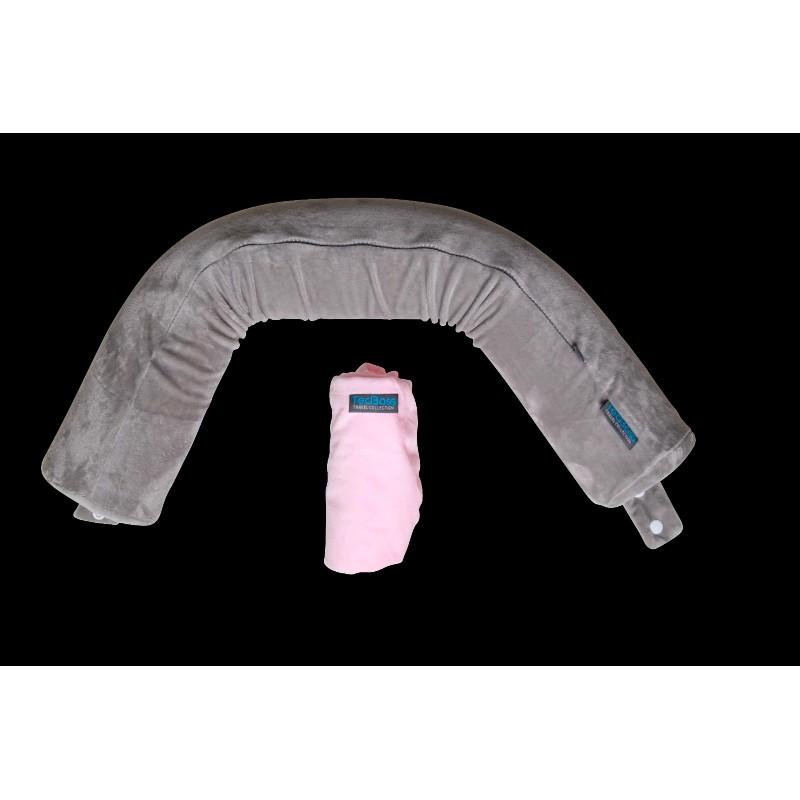 TedBoss Twist Travel Neck Support Pillow Flexible Memory Foam Pink Grey Case NEW