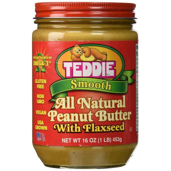 Teddie Smooth All Natural Peanut Butter with Flaxseed (Pack of 4)