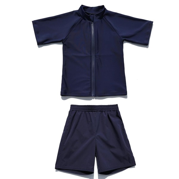 [Teddy] 体型カバースクール水着 セパレート 2点セット 女の子 男の子 水陸両用ラッシュガード UPF50+ kids517 (標準, ネイビー, 150cm)