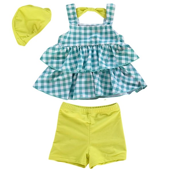 [Teddy] キッズ 水着 女の子 タンキニ セパレート 3点セット 帽子付き ティアードフリル 日焼け対策 kids458 (JP, 身長, 110, 標準, グリーン)