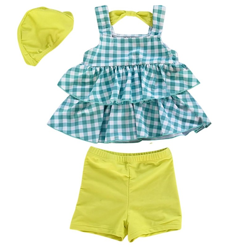 - セット内容・3点セット子供水着・トップス・パンツ・スイムキャップ 同系色バイカラーでお姉さん感◎ギンガムチェックが夏らしい♪