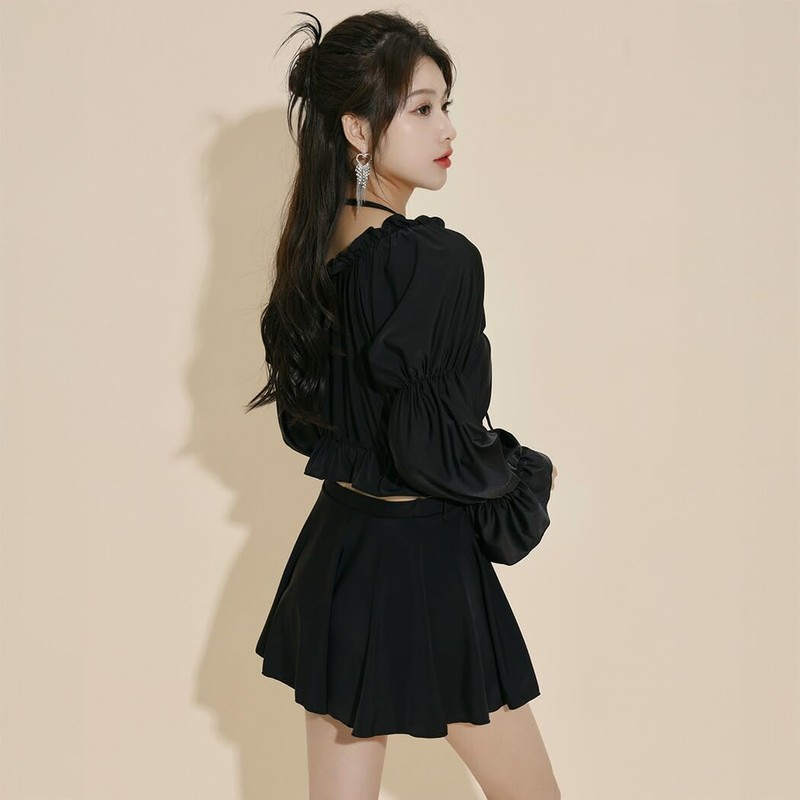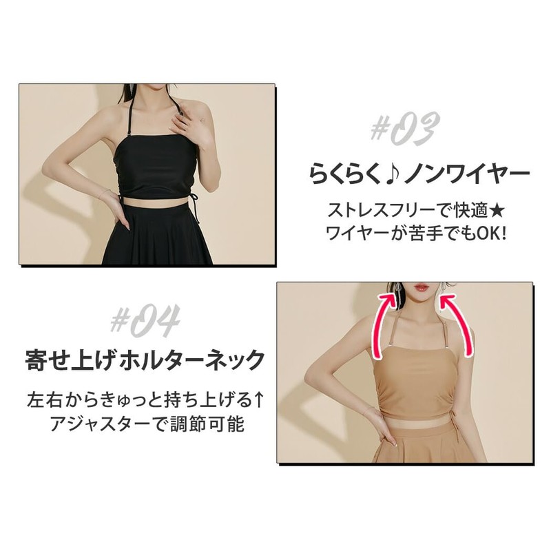 - セット内容・4点セット・トップス・ブラ・ショートパンツ・スカート 大人可愛い控えめフリルの長袖トップスで体型カバーも◎着まわせる4点セット♪服みたいな水着 ミニ丈 ショートパンツ 露出控えめ キャンディスリーブ ドロスト