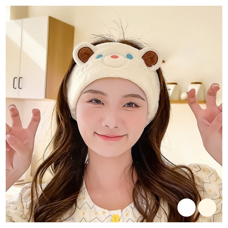 Teddy Bear Microfiber Face Wash Headband URD-380 Beige/FREE 3ea