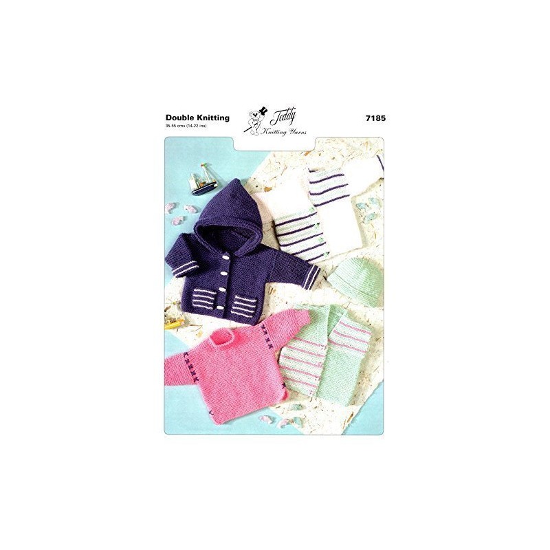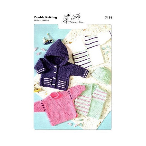 - Ideal knitting pattern for beginners, this delightful pattern includes a jacket, jumper, cardigan, vest and hat. Real value for money. To Fit: 35 - 55cm (14-22 inch chest) Materials 1 pair each 3.25mm and 4mm knitting needles. Two buttons for sweater, 4-5 buttons for hooded jacket, 4-5 buttons for cardigan and waistcoat. 1-4 100g balls (size dependant). Oddment of contrast colours.