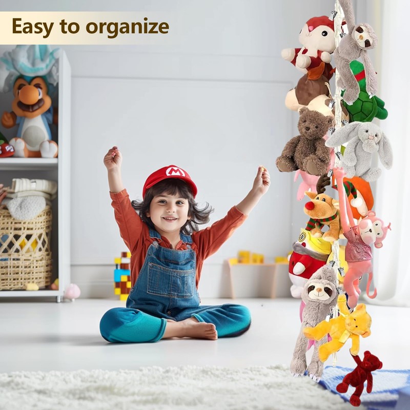 • 【Double Hanging Option】The product length can reach 2 meters. The stuffed animals hanging storage can be hung horizontally or vertically, which can meet your different hanging needs