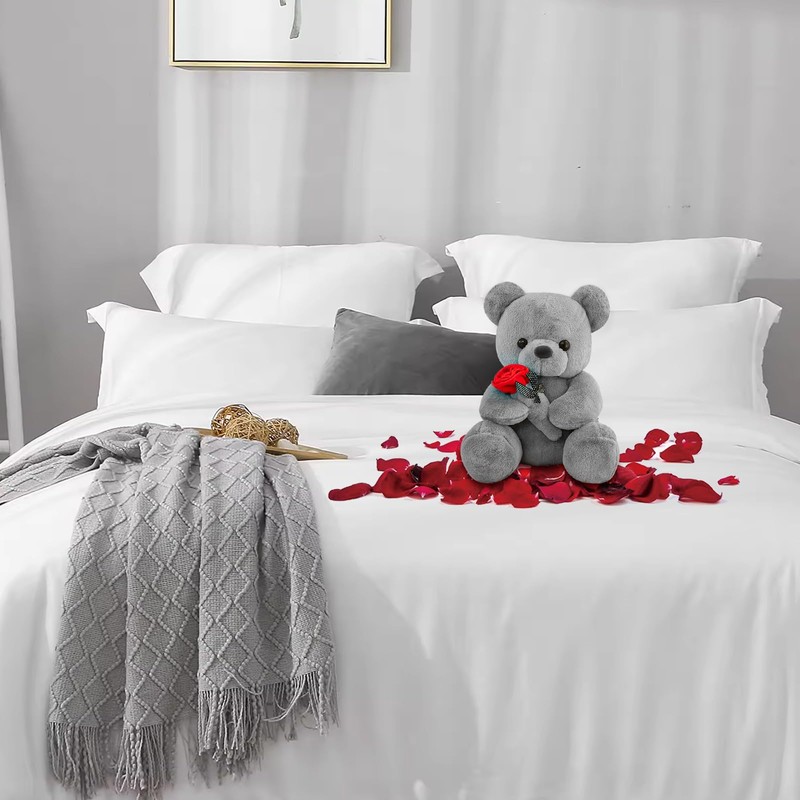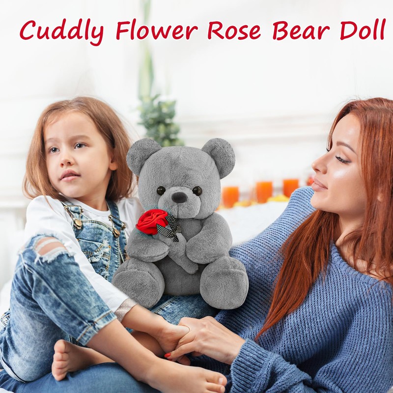 Teddy Plüschbär, 25cm Teddybär mit Rose, Teddybären Rose Stofftier Spielzeug, Plüschtier Bär Kuscheltiere, Kissen Puppe für Mama,Mädchen,Jungen Geburtstag Geschenk,Valentinstag Plush Bear Toy (Grau)