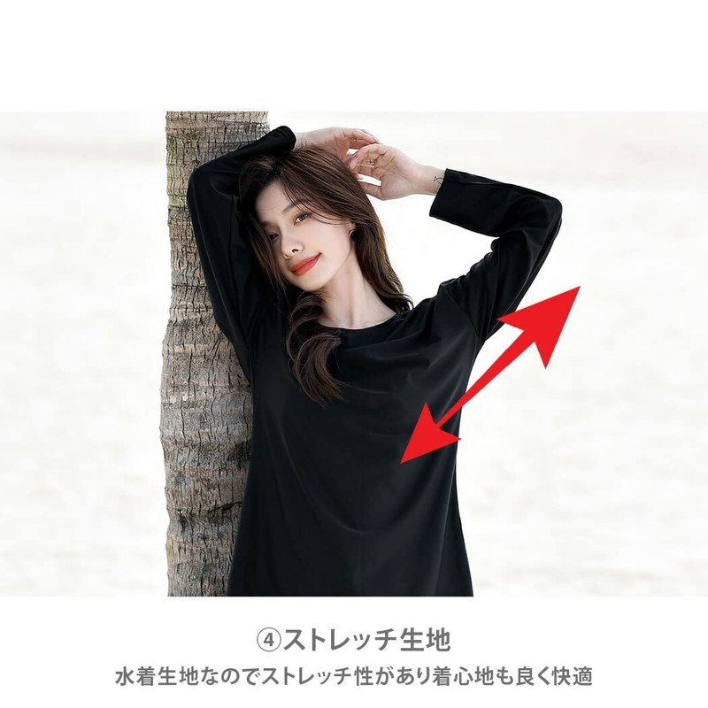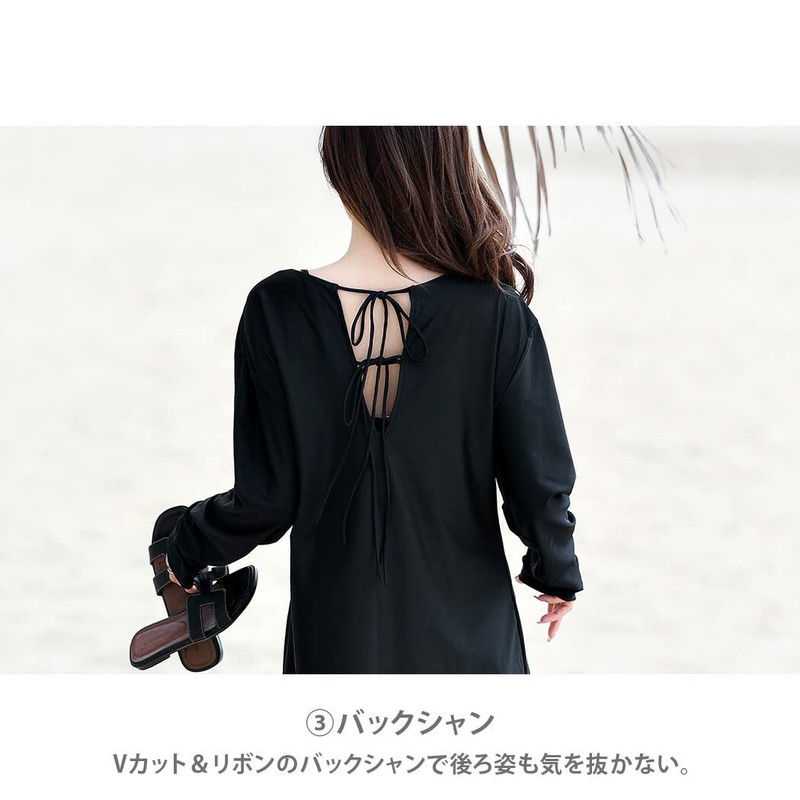 - Set Contents: 1 piece, rash guard shirt, easily worn over a swimsuit, UV protection, ribbon on the back of the back, amphibious, solid, black, covered, cute, women's, oversized