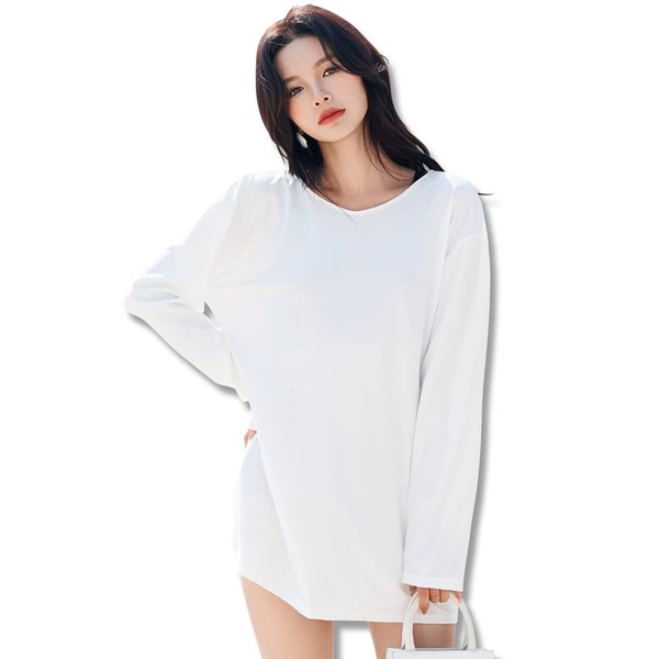 Teddy rashguard014 Women's Rash Guard, Long Sleeve, Thin, UV Protection, Drop Shoulder, Stretch, white